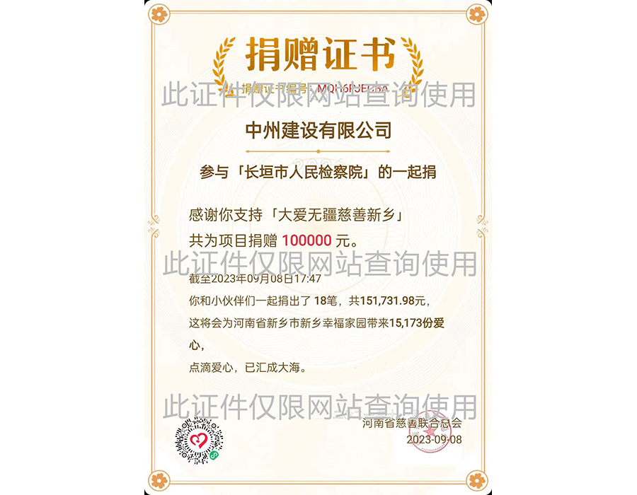 2023年河南慈善聯合會捐贈證書